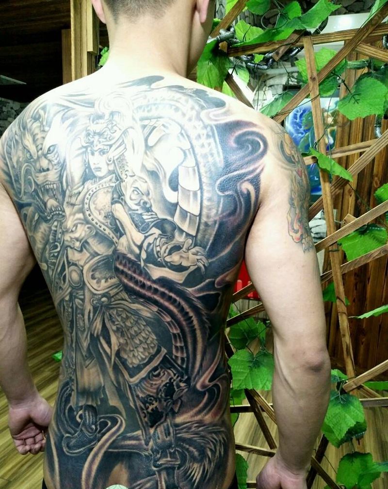 满背赵子龙终于全部完成。纹身图片