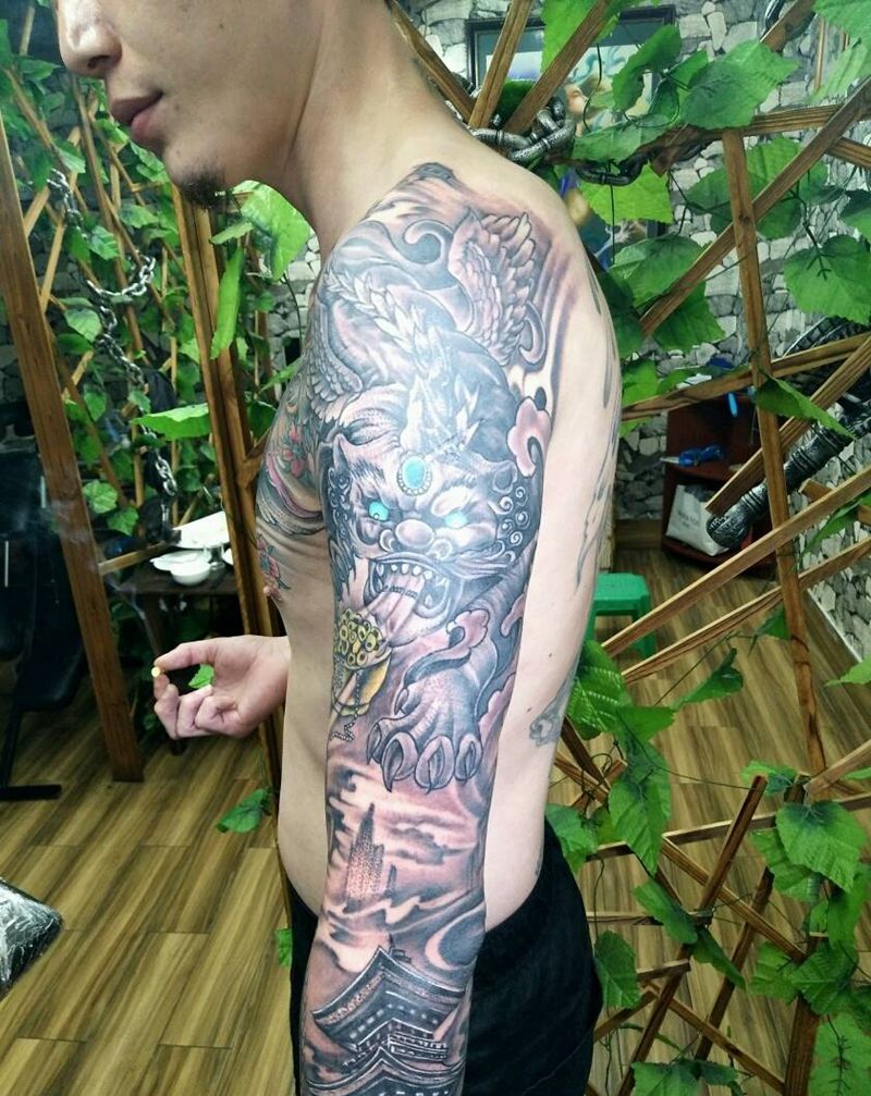 当前位置: 首页 >福建省泉州市纹身店-墨韵纹身会所纹身图案>第一次一次性完成一条花臂。纹身图片