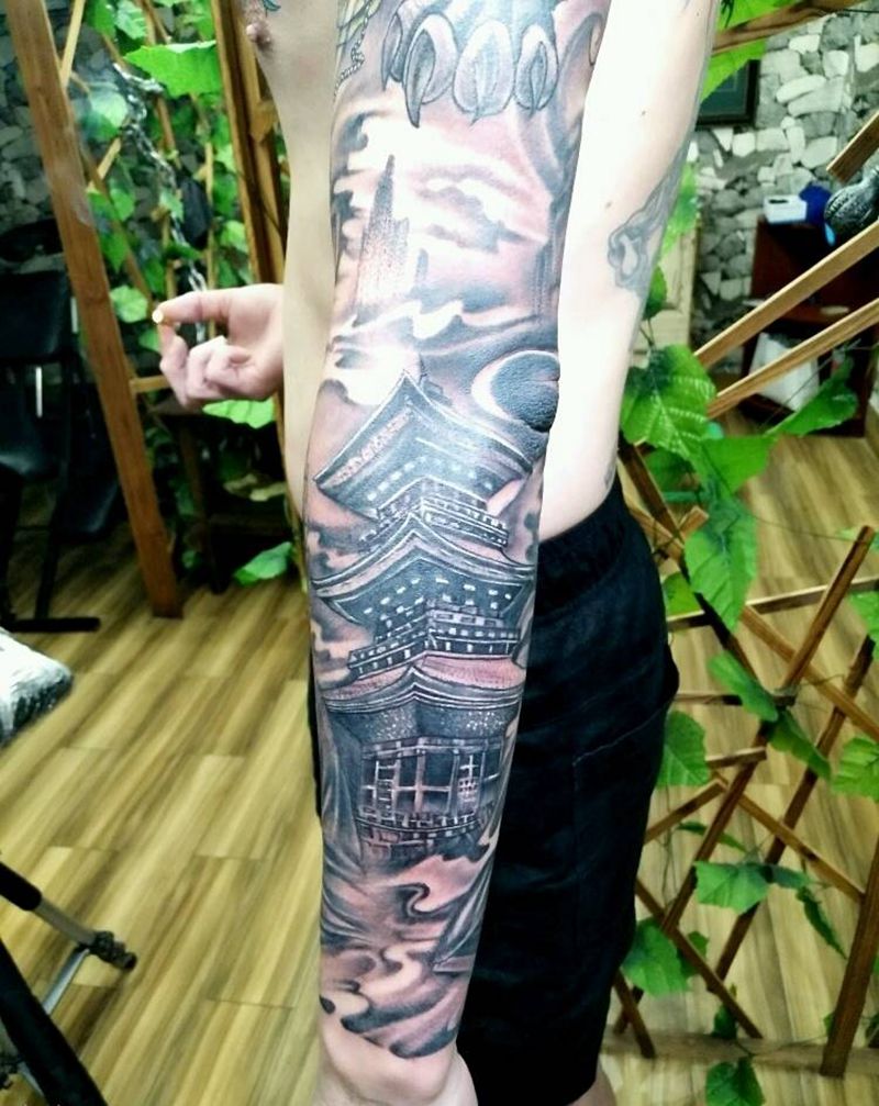 当前位置: 首页 >福建省泉州市纹身店-墨韵纹身会所纹身图案>第一次一次性完成一条花臂。纹身图片