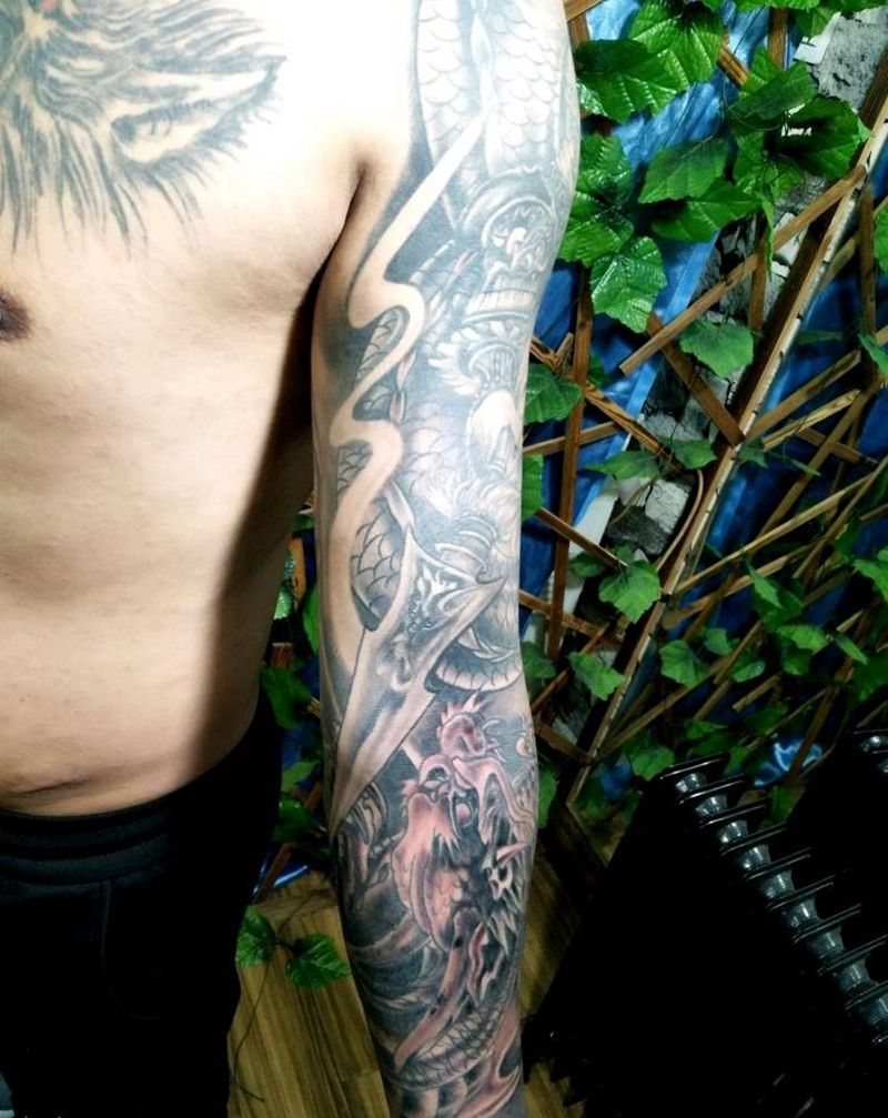 当前位置: 首页 >福建省泉州市纹身店-墨韵纹身会所纹身图案>赵子龙花臂纹身图片