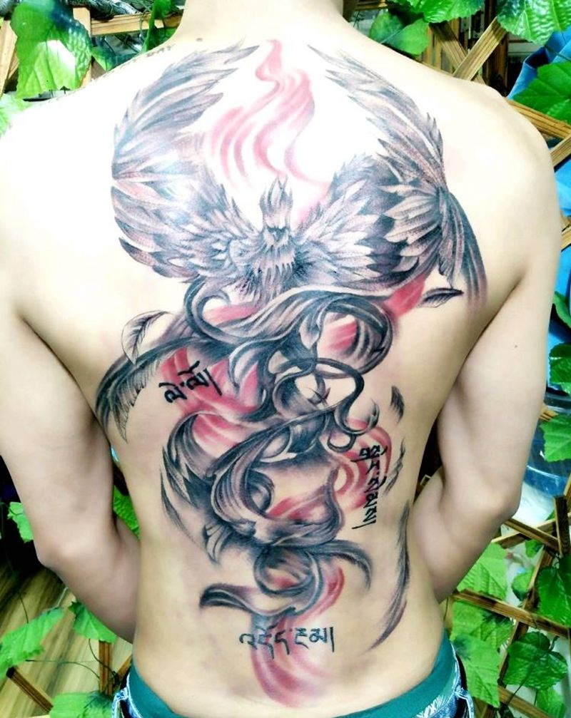 黑灰满背纹身图案