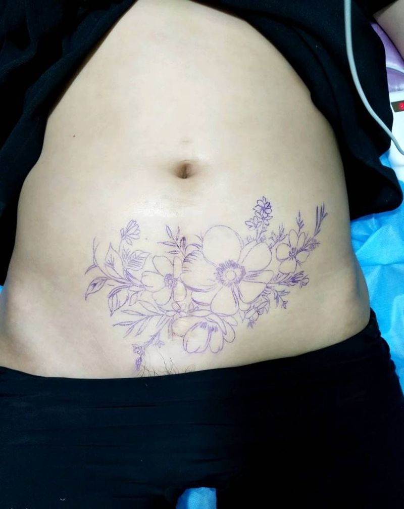 • 时尚性感的腹部莲花纹身图案