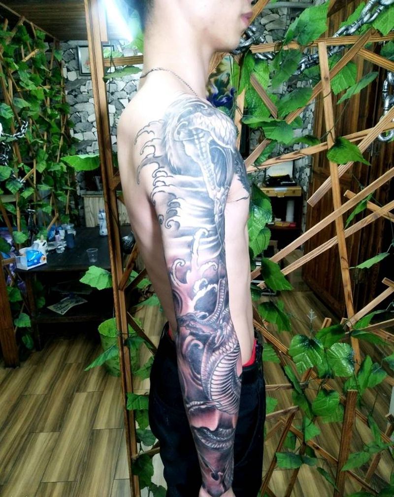 • T网红王老大花腿龙纹身图片_腿部新传统纹身图案