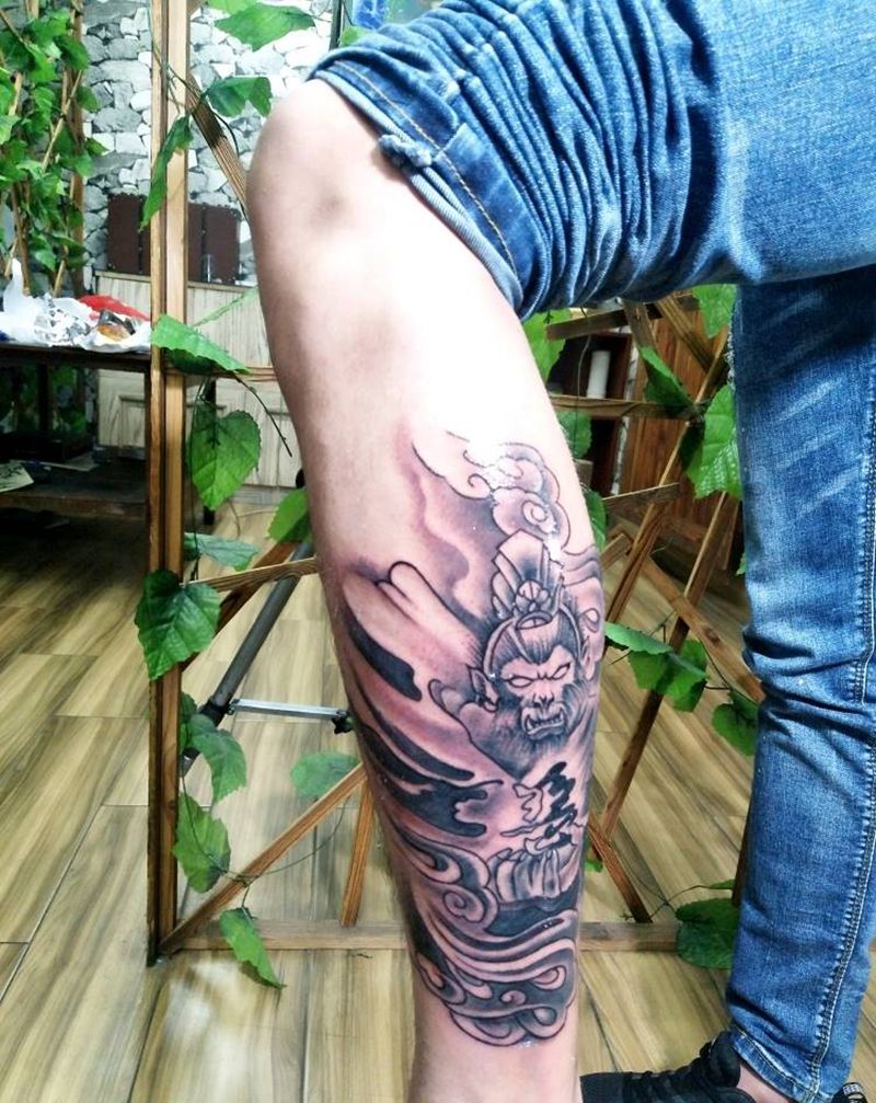 • T网红王老大花腿龙纹身图片_腿部新传统纹身图案