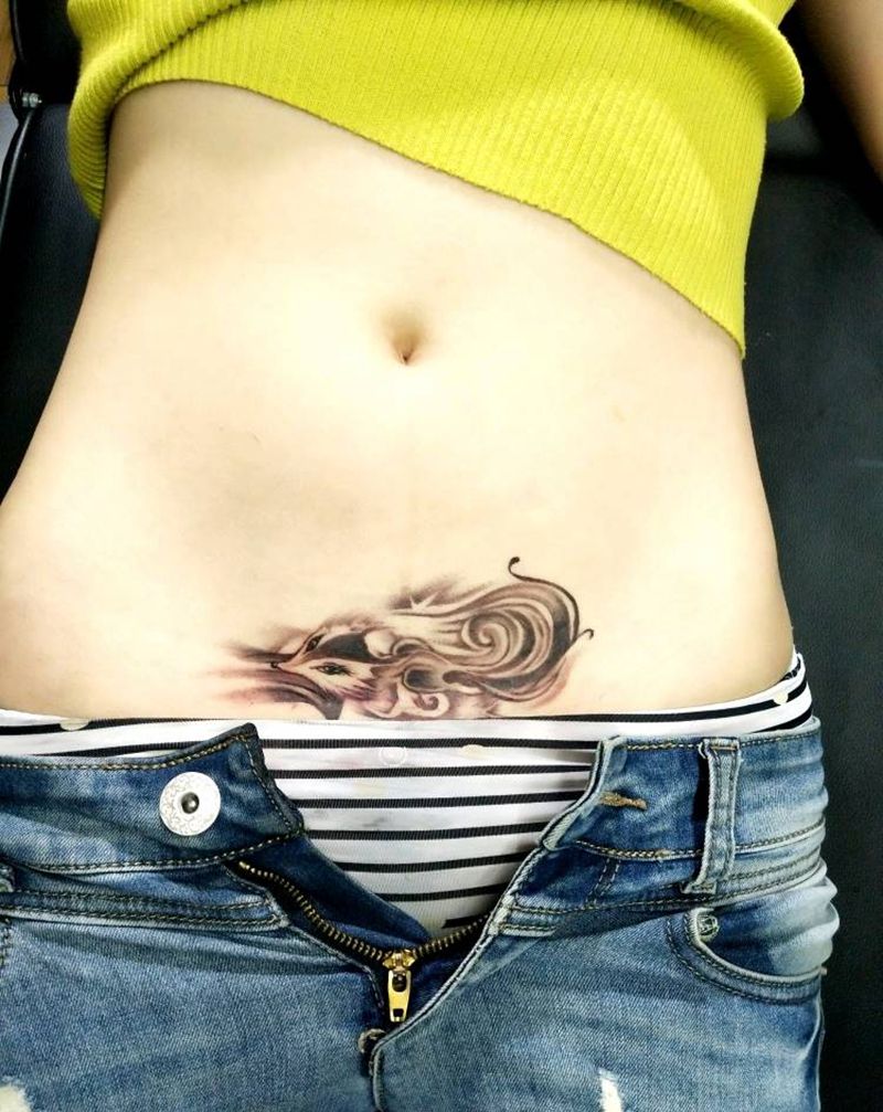 • T关于私处得爱!纹身图片_成品腹部清新字符图腾纹身图案