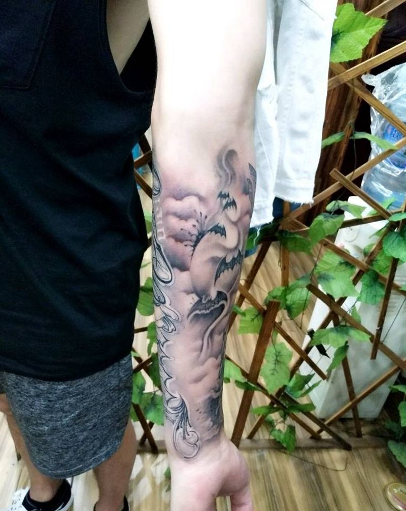 • T网红王老大花腿龙纹身图片_腿部新传统纹身图案