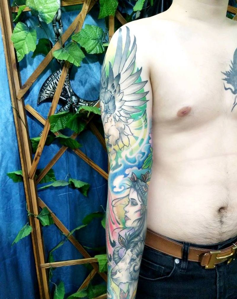 当前位置: 首页 >福建省泉州市纹身店-墨韵纹身会所纹身图案>花臂纹身图片_手臂手部New School纹身图案