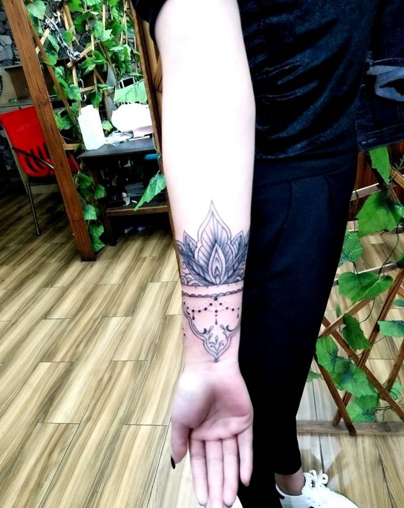 素花臂环纹身图片_手臂手部点刺纹身图案