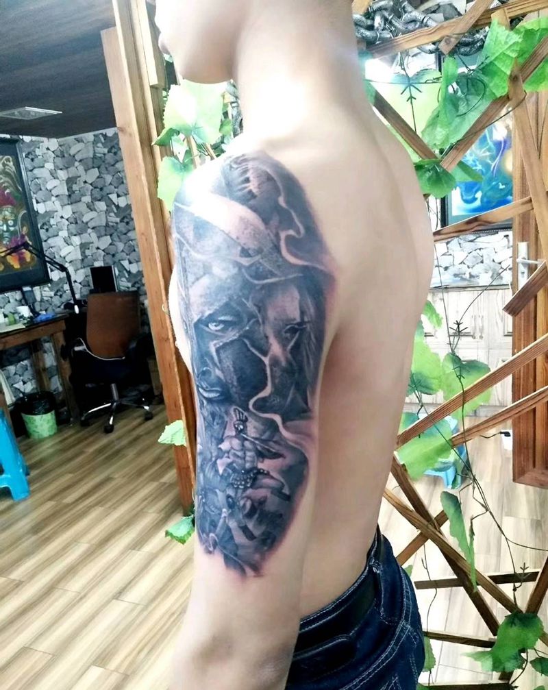 斯巴达纹身纹身图片_手臂手部欧美写实纹身图案
