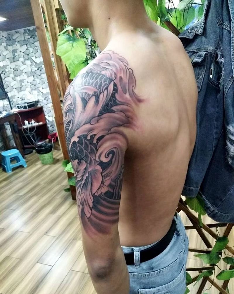 当前位置: 首页 >福建省泉州市纹身店-墨韵纹身会所纹身图案>鲤鱼纹身图片_手臂新传统纹身图案