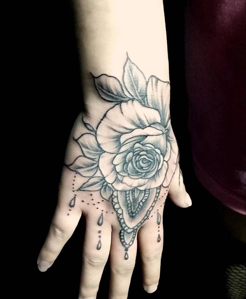 • 手背潮流时尚的玫瑰花眼睛纹身图案