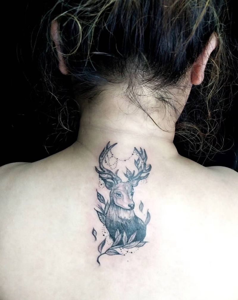 鹿纹身图片_背部纹身图案