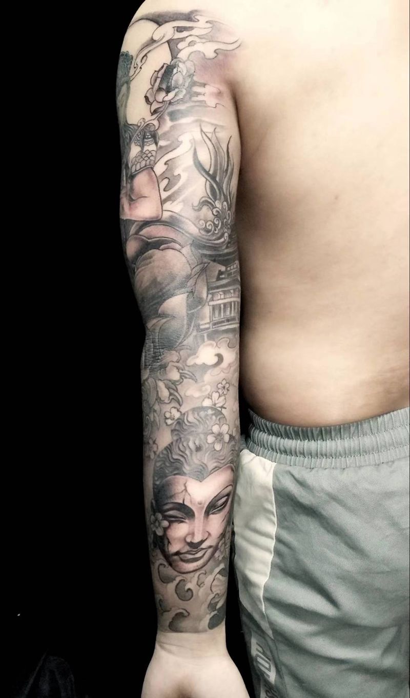 当前位置: 首页 >福建省泉州市纹身店-墨韵纹身会所纹身图案>花臂纹身图片_手臂新传统纹身图案