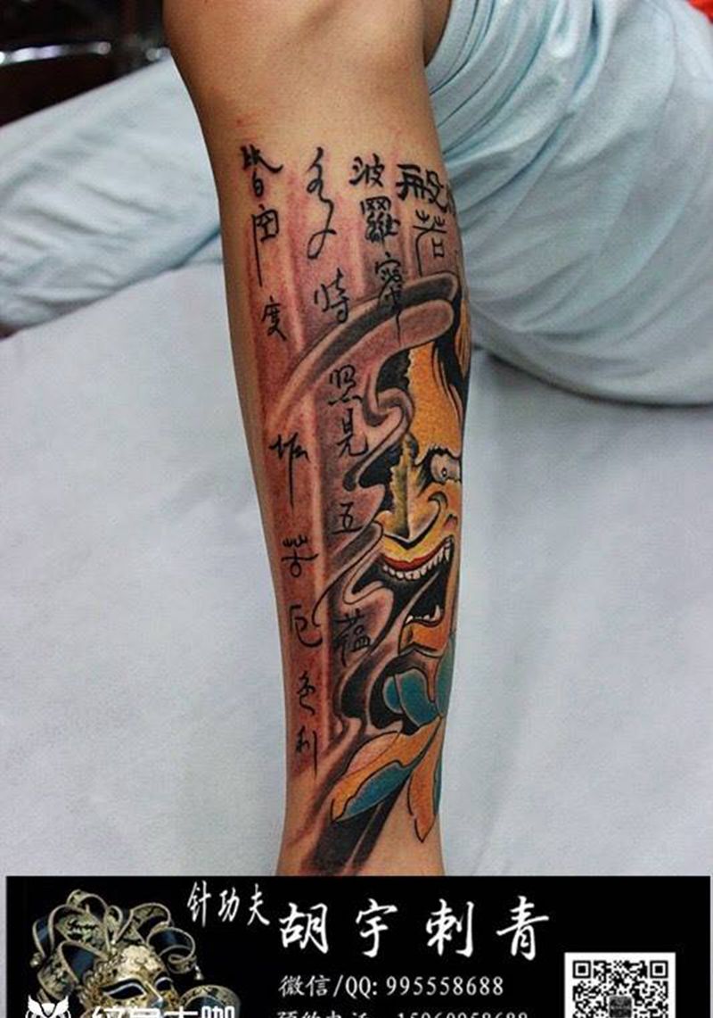 当前位置: 首页 >福建省三明市纹身店-福建沙县针印记刺青纹身图案>小腿般若纹身图片_成品腿部传统鬼神纹身图案