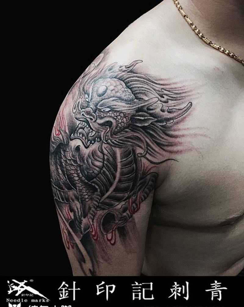 • 纹身吧推荐的披肩图腾半胛纹身图案作品展示