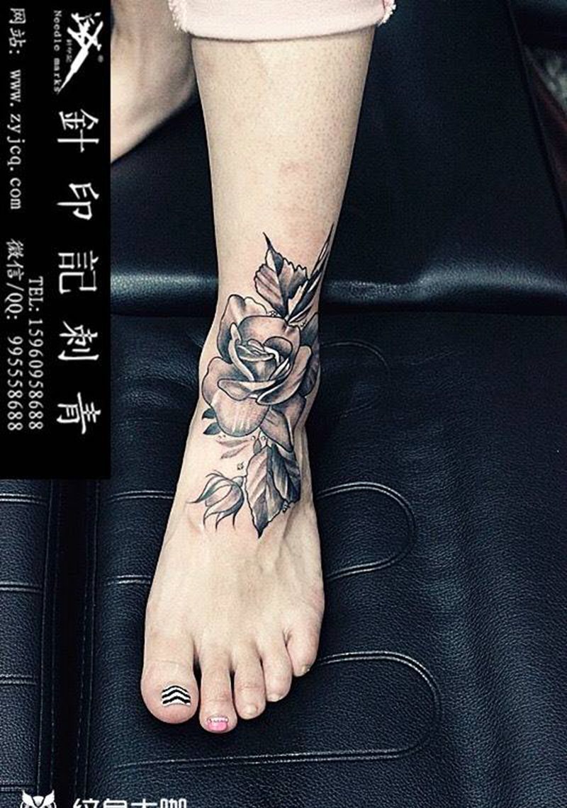 玫瑰纹身图片_成品脚部清新植物纹身图案
