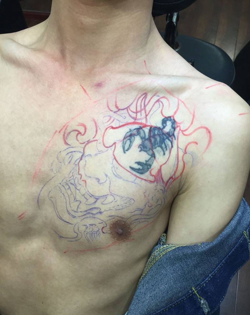 • 男性大花胸_42张优秀的男性大花胸纹身图案图片