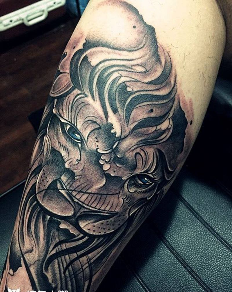 腿部狮子纹身图片