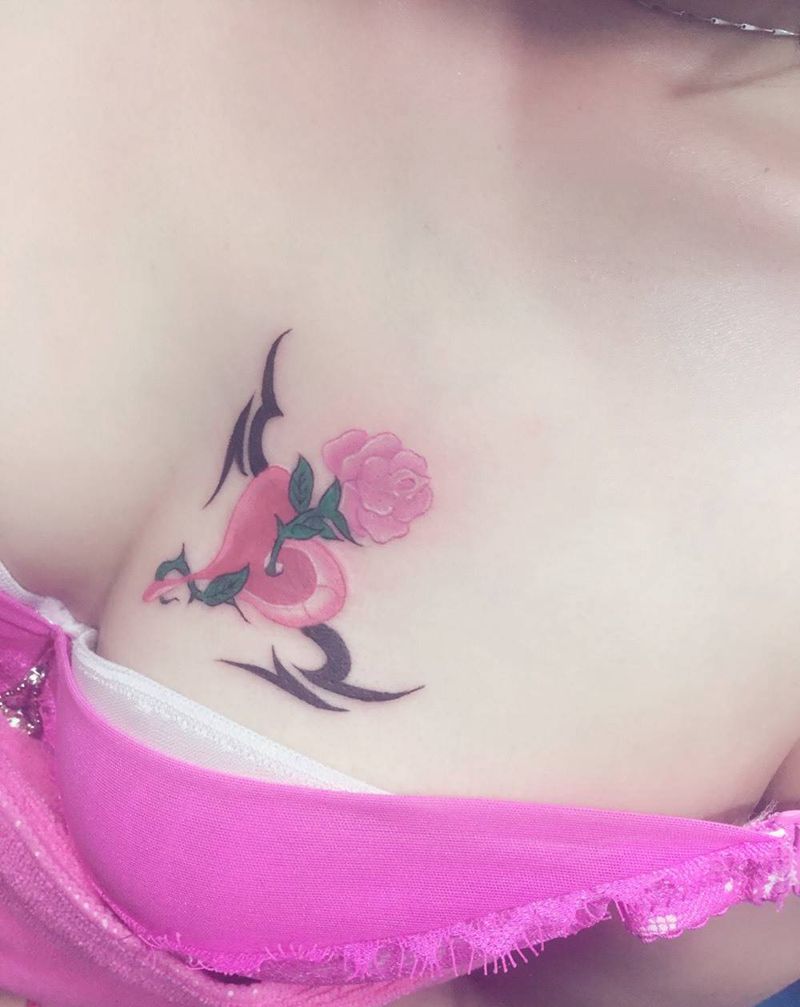 • 女性大花胸纹身_43张霸气漂亮的女性大花胸纹身图案作品