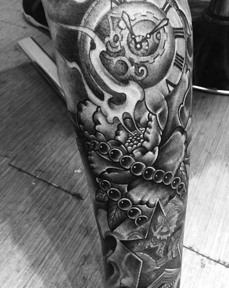 小腿牡丹纹身图片