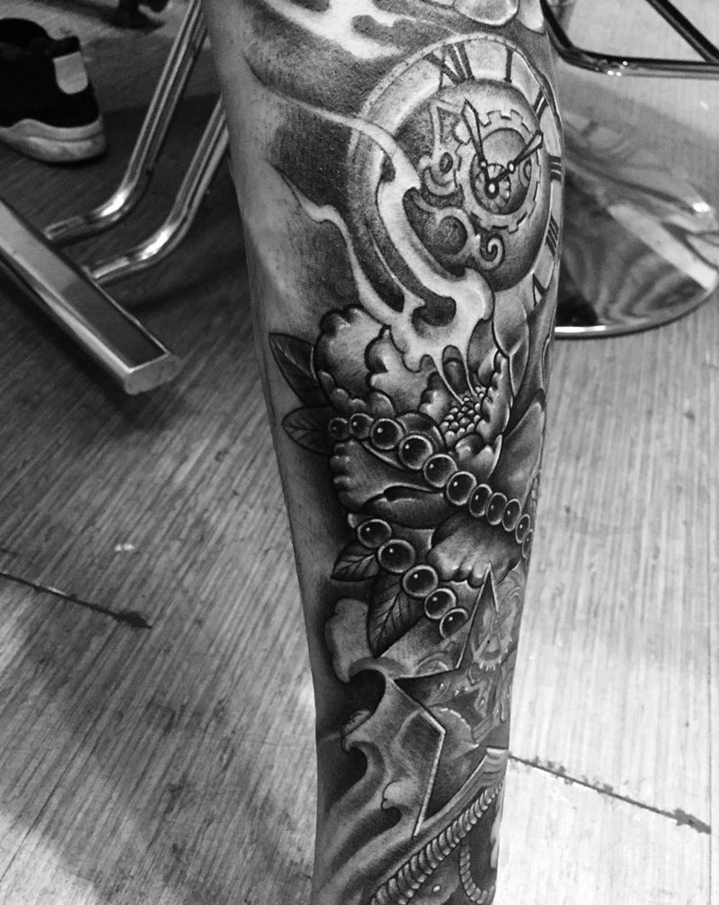小腿牡丹纹身图片