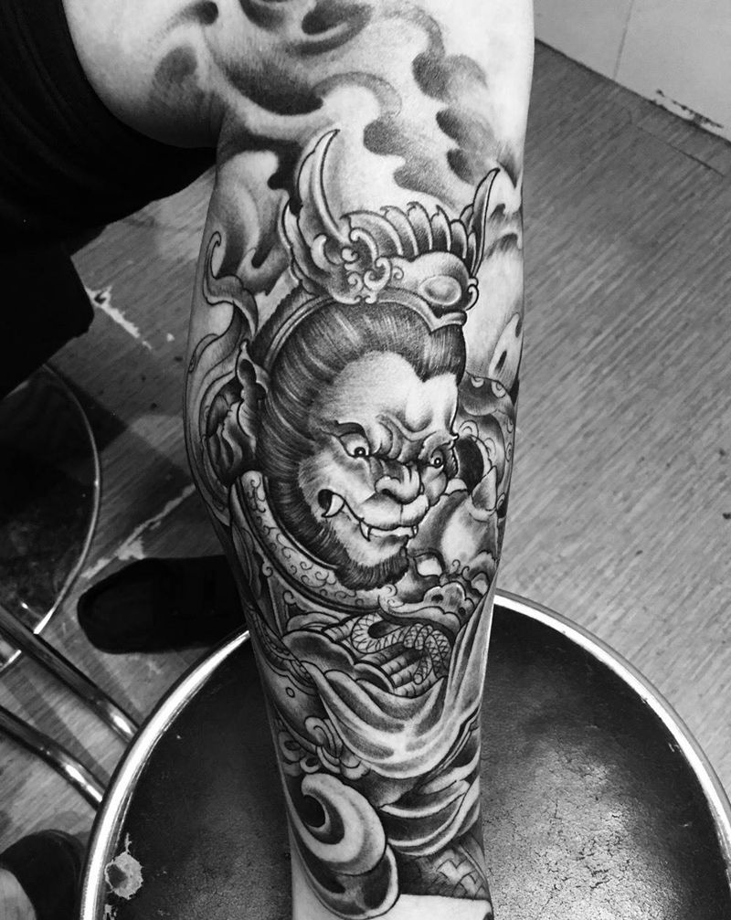 当前位置: 首页 >福建省三明市纹身店-福建沙县针印记刺青纹身图案>黑灰悟空纹身图片