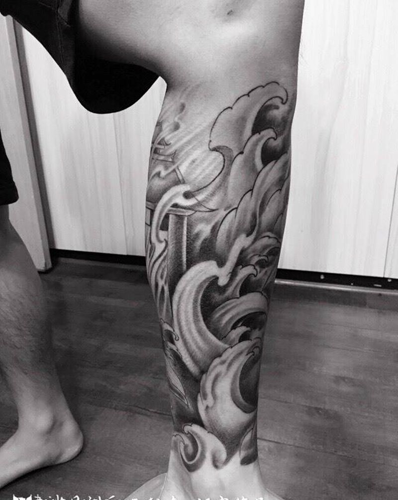 • T网红王老大花腿龙纹身图片_腿部新传统纹身图案