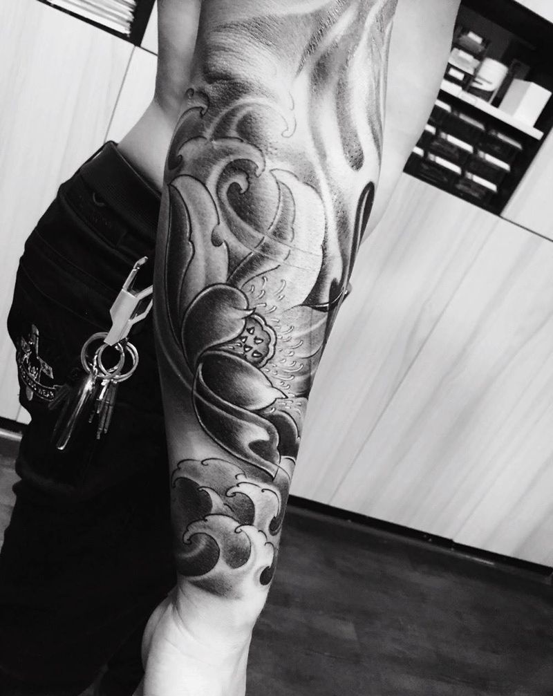当前位置: 首页 >福建省三明市纹身店-福建沙县针印记刺青纹身图案>遮盖作品--鲤鱼莲花(原创)纹身图片