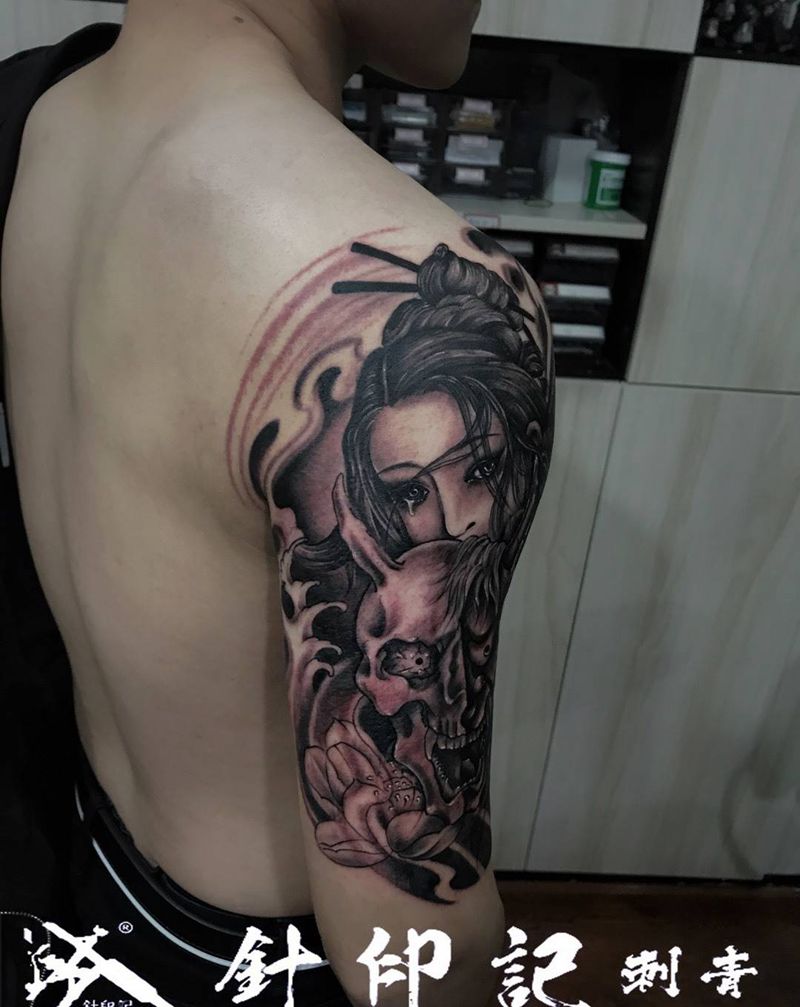 • 纹身吧推荐的披肩图腾半胛纹身图案作品展示