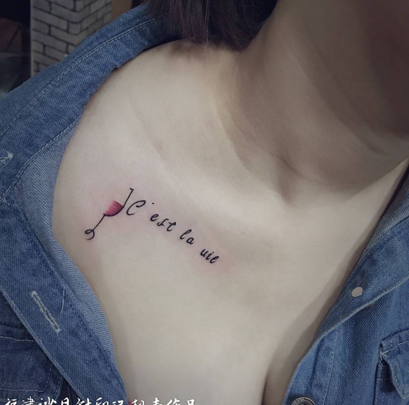 醉酒纹身图片_成品胸部清新字符纹身图案