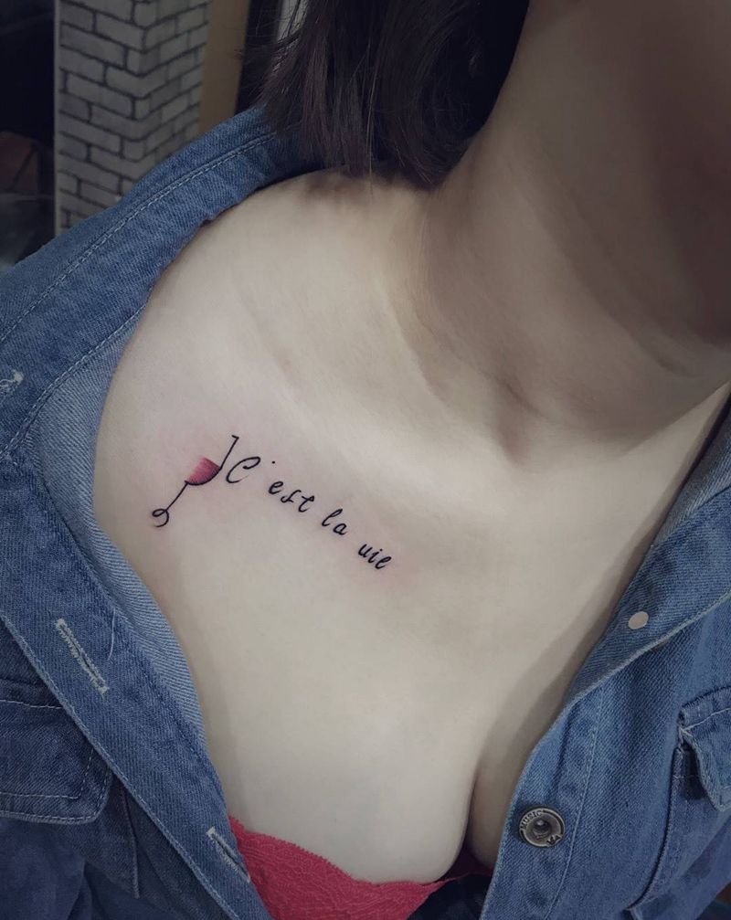 醉酒纹身图片_成品胸部清新字符纹身图案
