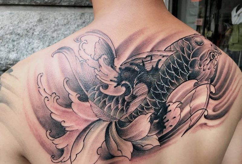 • 黑灰满背纹身图案