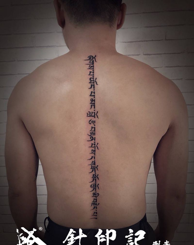 脊椎文字纹身图片_成品颈部传统字符纹身图案