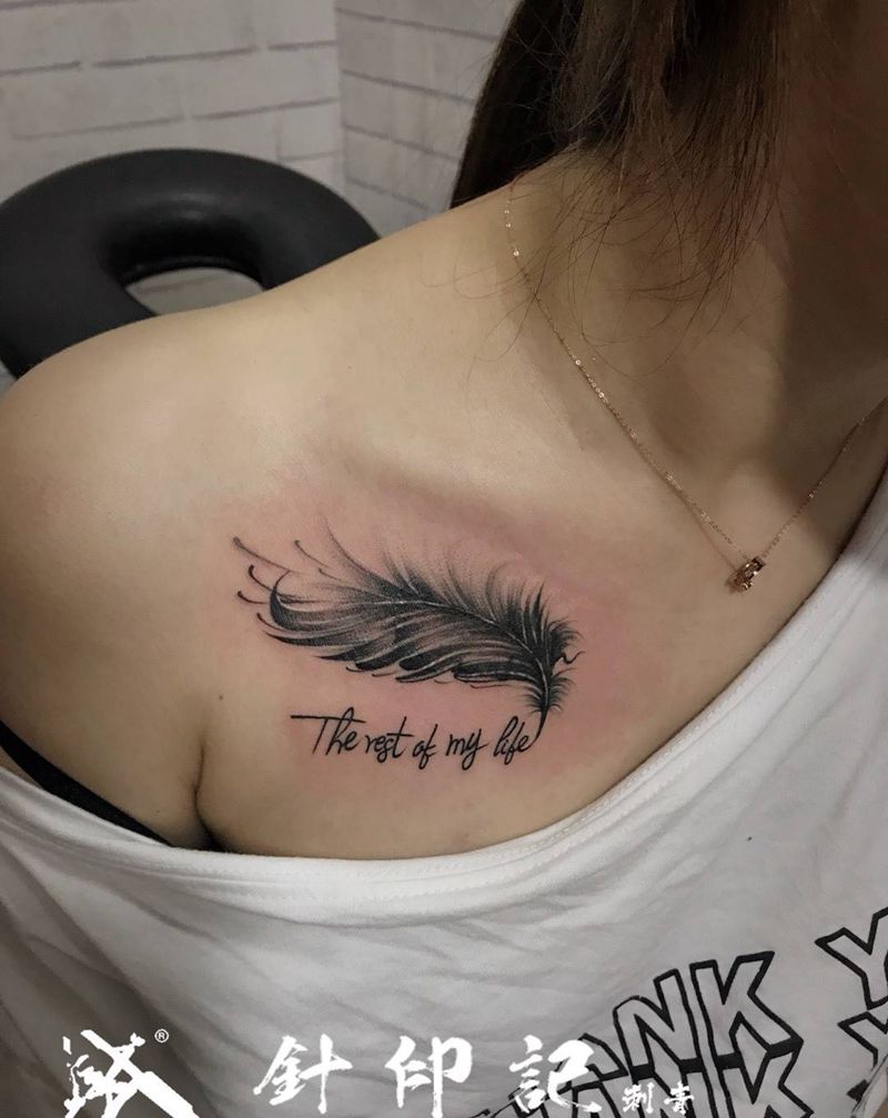 遮盖作品-羽毛纹身图片_成品胸部清新原创纹身图案