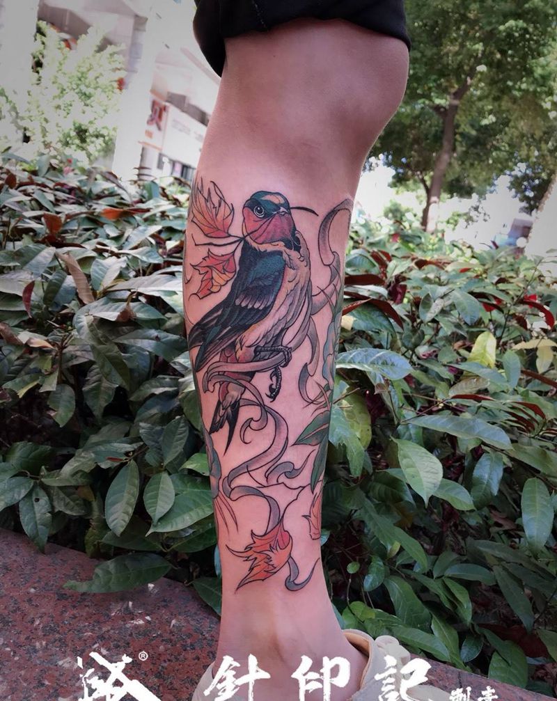 • T网红王老大花腿龙纹身图片_腿部新传统纹身图案