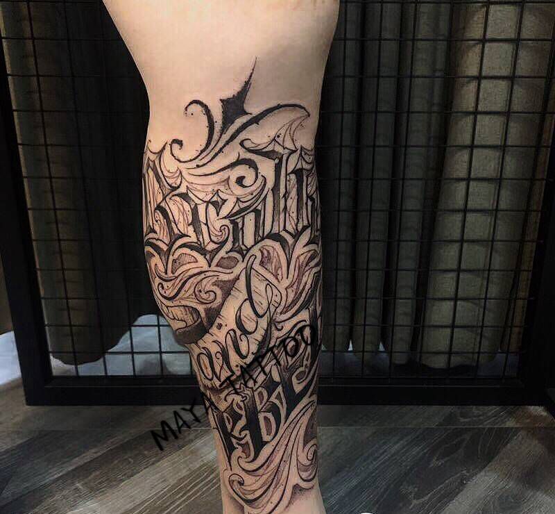 当前位置: 首页 >福建省泉州市纹身店-玛雅刺青纹身图案>花体字纹身图片_腿部纹身图案