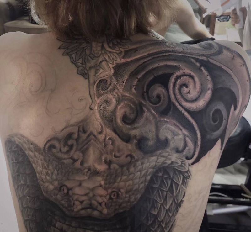 • 纹身吧推荐的披肩图腾半胛纹身图案作品展示