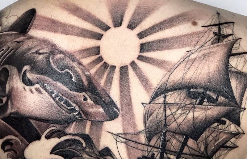 黑灰满背纹身图案