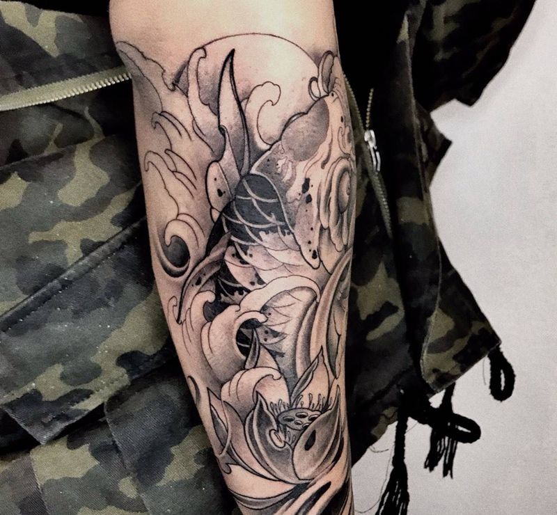 年年有余纹身图片_手臂老传统纹身图案