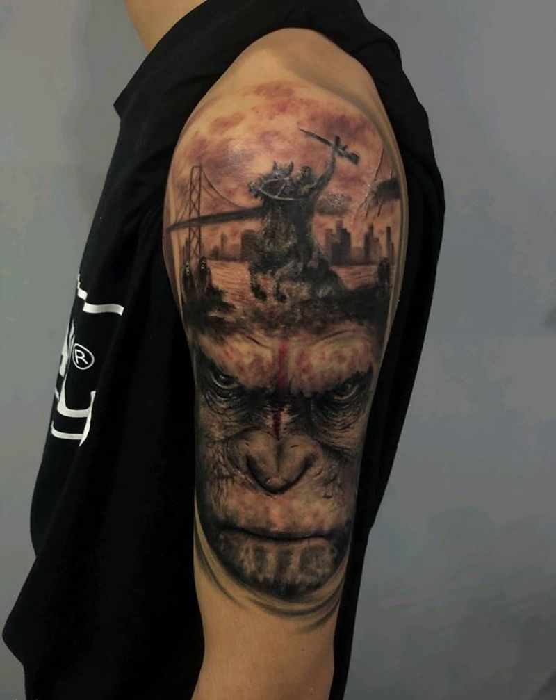 当前位置: 首页 >福建省泉州市纹身店-浮生会刺青纹身图案>猩球崛起 凯撒纹身图片