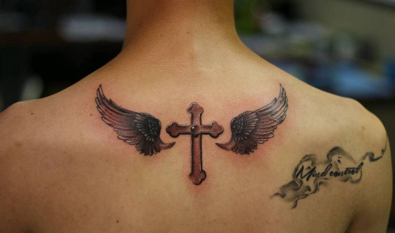 当前位置: 首页 >福建省泉州市纹身店-浮生会刺青纹身图案>原创设计十字架翅膀纹身图片
