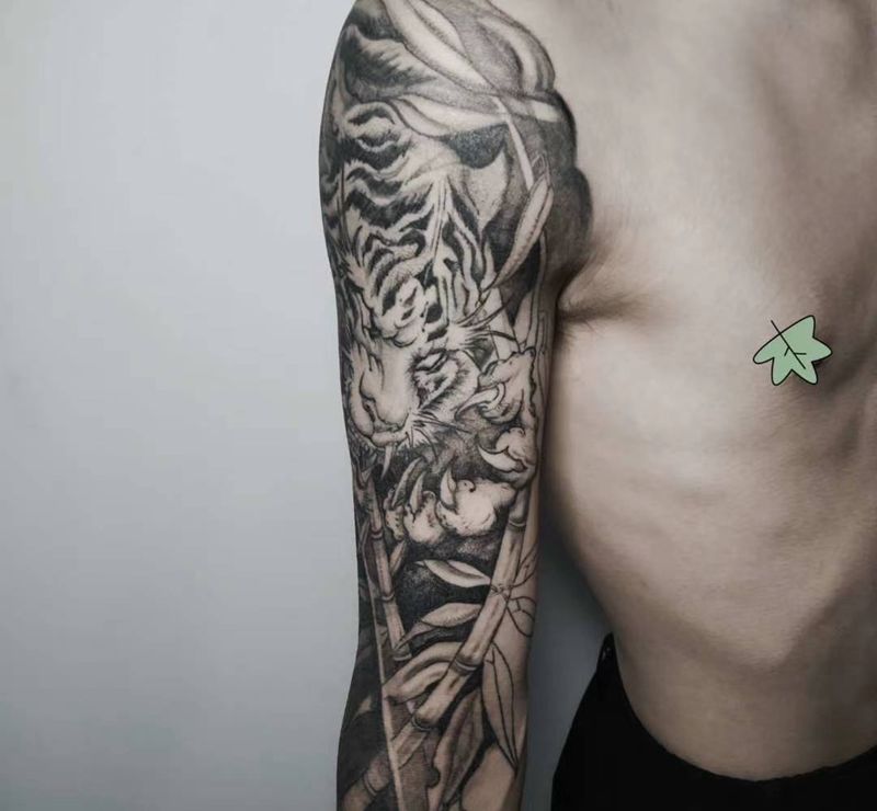 • H老虎花臂手稿图片 老虎个性纹身