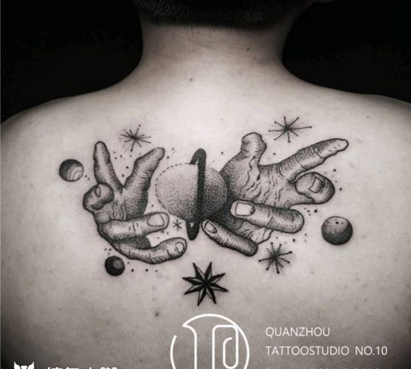 黑灰满背纹身图案