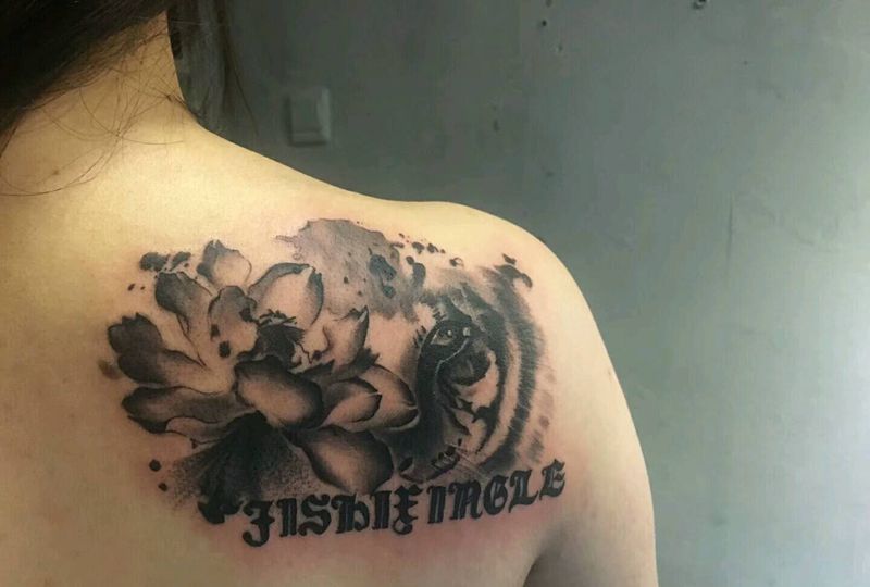 老虎纹身图片_肩部国画动物植物成品纹身图案