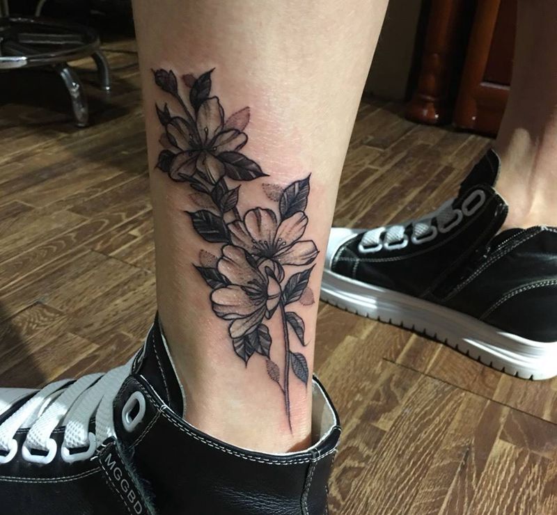 当前位置: 首页 >福建省泉州市纹身店-玛雅刺青纹身图案>花纹身图片_成品脚部腿部清新植物纹身图案