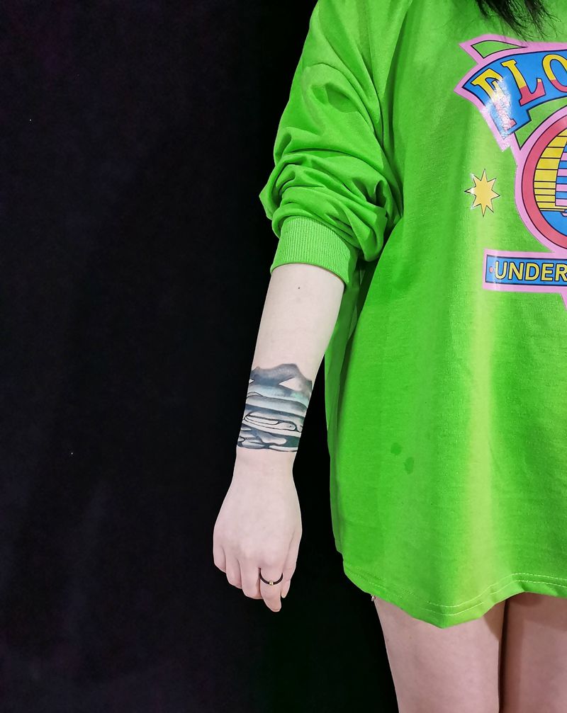 当前位置: 首页 >福建省泉州市纹身店-泉州鹏海刺青纹身图案>臂环遮盖旧纹身纹身图片_手臂水墨纹身图案