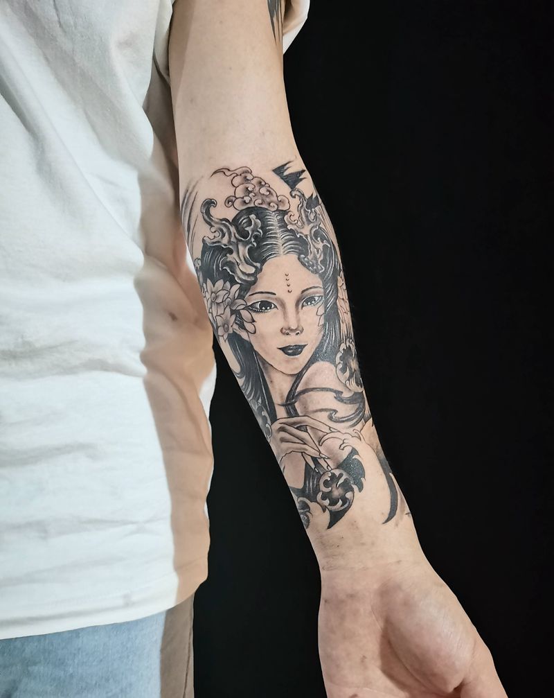 当前位置: 首页 >福建省泉州市纹身店-泉州鹏海刺青纹身图案>龙女纹身图片_手臂新传统纹身图案