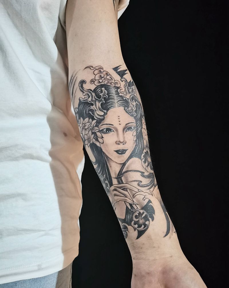 当前位置: 首页 >福建省泉州市纹身店-泉州鹏海刺青纹身图案>龙女纹身图片_手臂新传统纹身图案