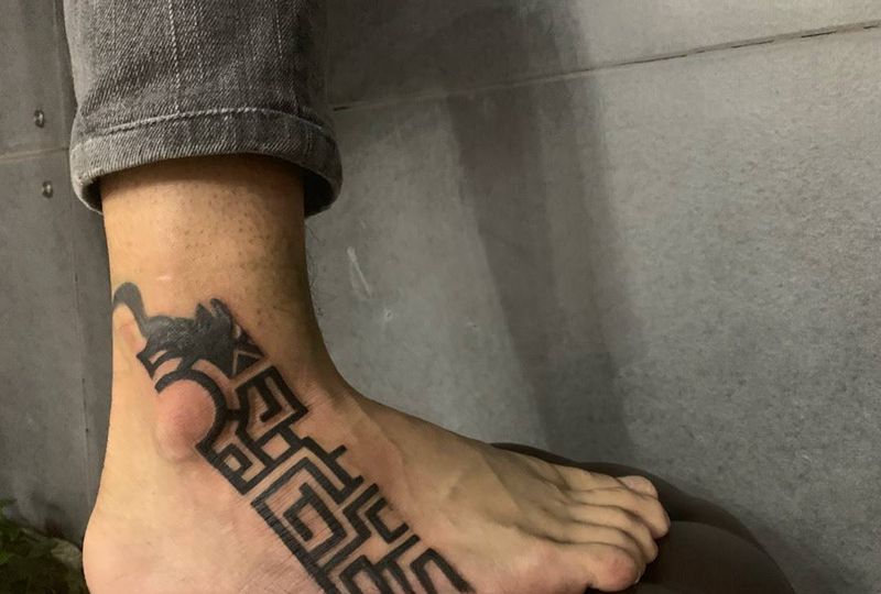 当前位置: 首页 >福建省泉州市纹身店-玛雅刺青纹身图案>遮盖修改纹身图片_腿部脚部图腾几何纹身图案