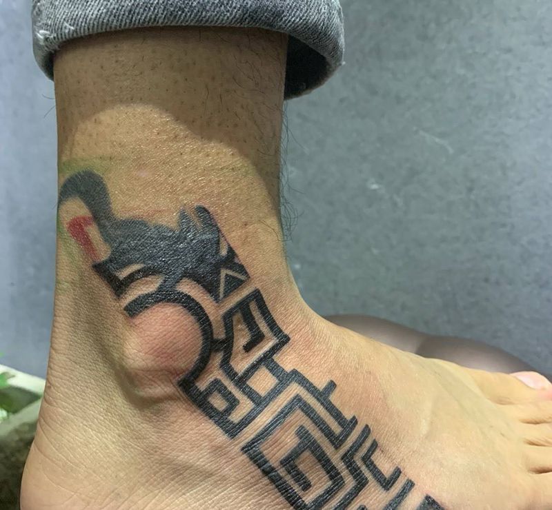 当前位置: 首页 >福建省泉州市纹身店-玛雅刺青纹身图案>遮盖修改纹身图片_腿部脚部图腾几何纹身图案